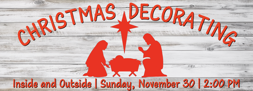 On November 30th at 2:00 PM we will start the process of decorating our church for the Christmas season. Inside and out.