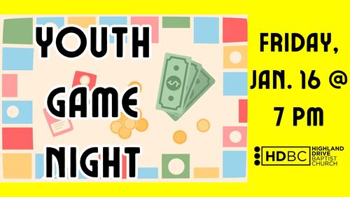 @HDBC.Students will be hosting a game night on Friday, January 16th at 7pm in the HDBC Youth House. This is a great opportunity for building and strengthening relationships. Please bring your favorite board or card games and a snack to share.