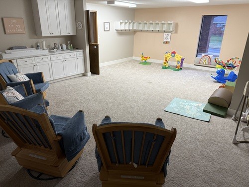 A nursery is offered for children birth – three years old. A check-in room is located in the west hall (turn right as you enter the front foyer). For more information click here.